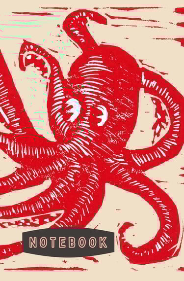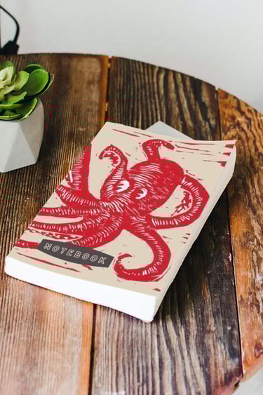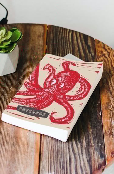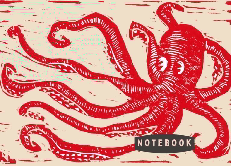 A fun and colourful take on the dot grid notebook with a animated octopus wrapping itself around both the front and back covers. 175 pages with index and numbered pages. Handy for keeping track of your notes and journal entries especially with their corresponding page noted on the front index. Makes everything that much easier to find.