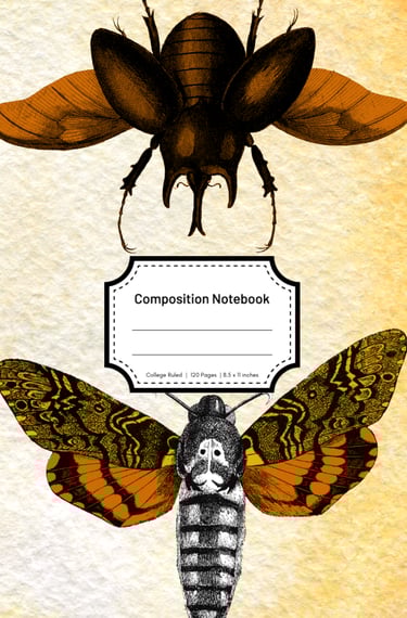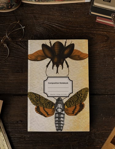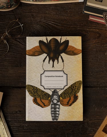 Spooky Death moth, beetles and spiders adorn the covers. Perfect for lessons, making notes in school, or journalling. It's a unique and macbre gift for those who appreciate the spooky side of life.