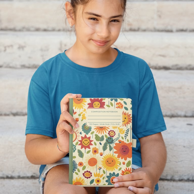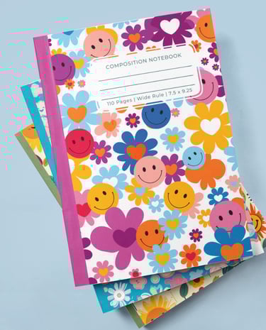 A perfect for teenagers who want to bring a Preppy vibe into their daily lives! The Aesthetic Preppy Notebook with smiley faces, hearts and flowers has a soft matte cover and 110 pages of wide-ruled paper. It's ideal for school use, providing an easy and convenient way to jot down thoughts, plan the day, or take notes.