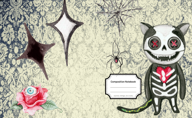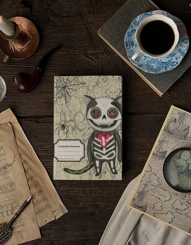 Creepy Halloween composition notebook for cat lovers with a spooky side.