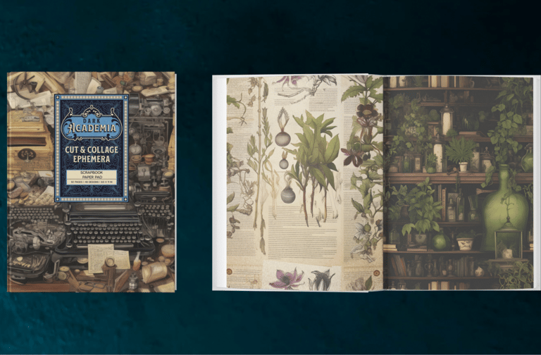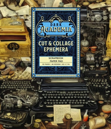 Our Dark Academia Cut and Collage Scrapbook Paper and Ephemera Book is the perfect way to add a touch of dark flair to your creative paper projects. All 48 designs feature bold but muted colors that are perfect for creating stylish and eye-catching layouts. From Gothic imagery and dark fashion to Steampunk-inspired motifs and Victorian botany, this paper set will help you craft unique and one-of-a-kind scrapbook pages or dark and moody collages that you and your friends will love. The high-quality 90gsm paper is perfect for collaging, decoupaging, scrapbooking and for junk journals.