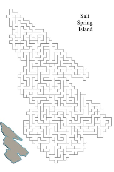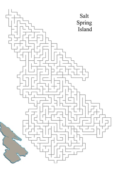 We’ve created a puzzle book that will give you and the family hours of fun sleuthing out roads, nearby islands, common animals and plants and even shops and galleries in our word searches. We also have a section of mazes in the shape of your favourite lakes, Salt Spring Island and as a bonus, even a surprise shape maze that everyone will recognize.